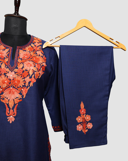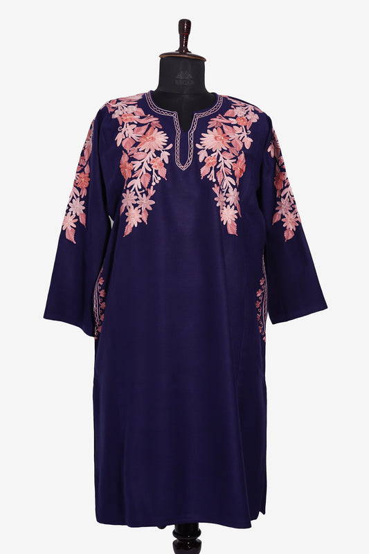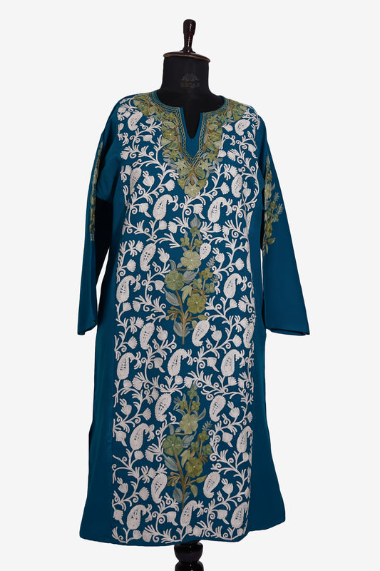 Prussian Blue Pheran with Aari Embroidery