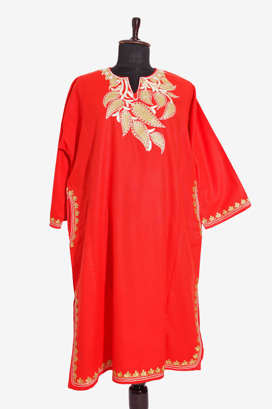 Crimson Petal Pheran with Aari Embroidery