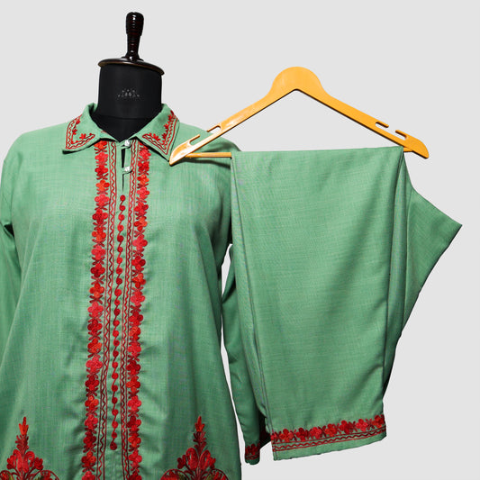 Mint Julep Ruby Cotton Co-ord Set with Aari Embroidery