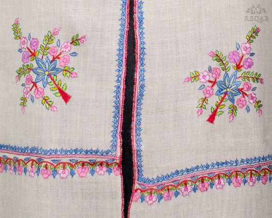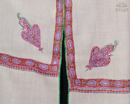 Half Spanish White Hashidar Pashmina Stole