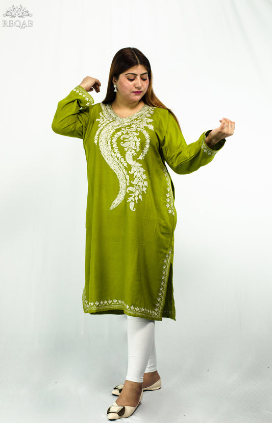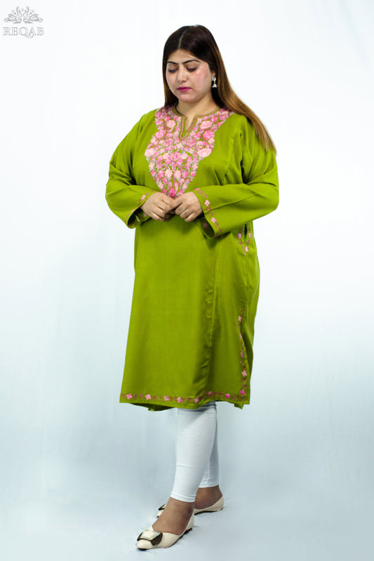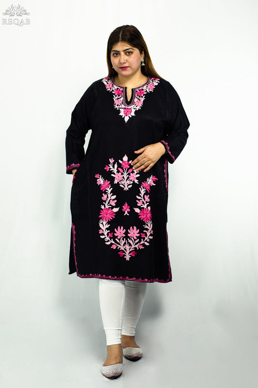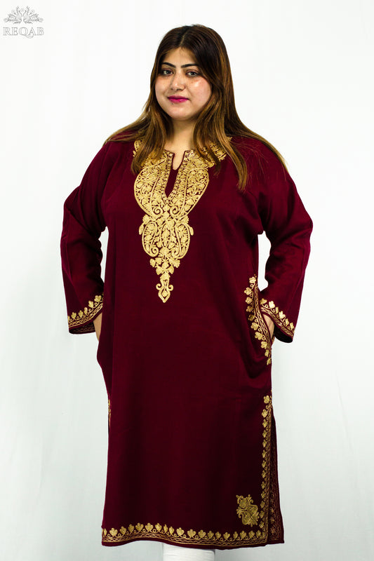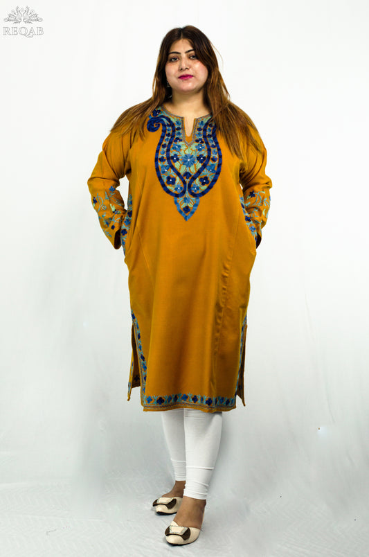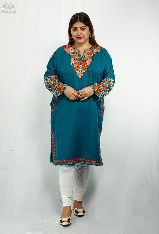 Blue Lagoon Pheran with Chinar Leaf Aari Embroidery