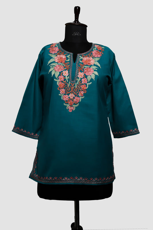 Blue Lagoon Ruby Cotton Top with Aari Embroidery