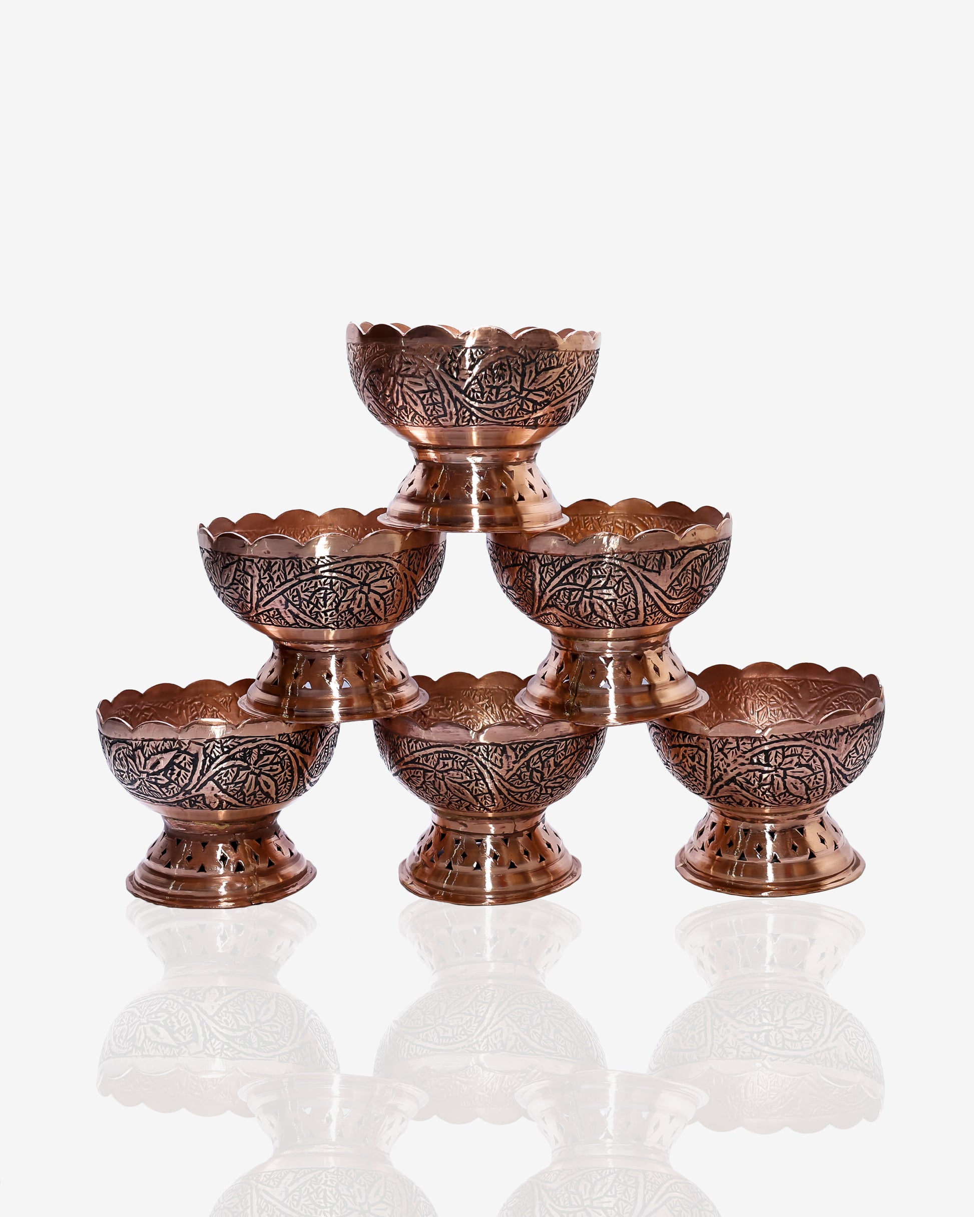 Kashmiri Copper Ice Cream Bowl Set – Hand-Engraved Chinar Leaf Design