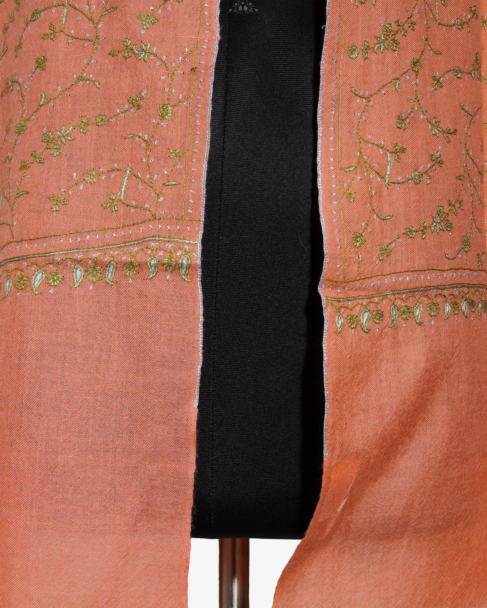 Peach Blossom GI Pashmina Stole with Hand Sozni Embroidery
